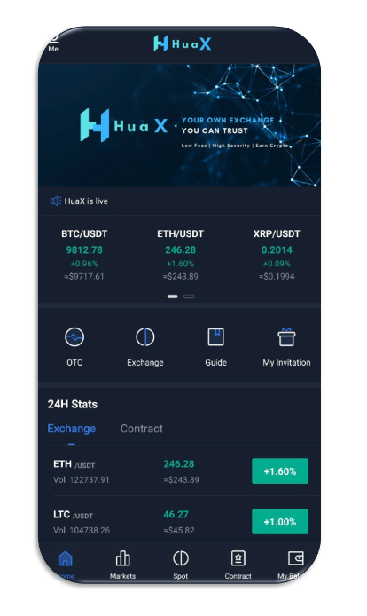 HUA Exchange "HUAX" has registered over 1 million users, across 200 countries and regions. HUAX (Hua Exchange) is a digital asset trading platform, registered in Cayman Island. With the key mission of "Your own Exchange, You can Trust", HUAX is currently offering traders with the lowest transaction fees, a cutting-edge security system, and deep liquidity trades for digital assets, over-the-counter and derivatives products.